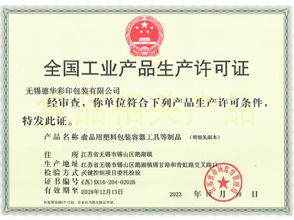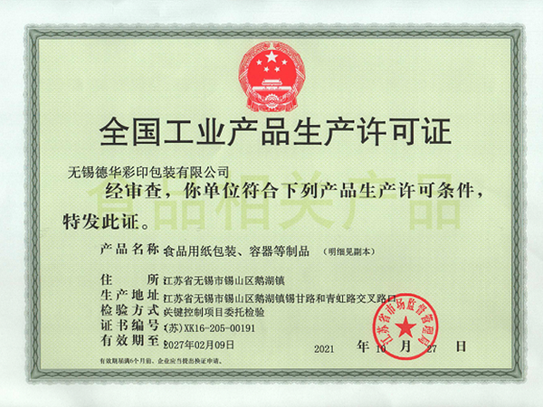 食品(pǐn)用紙包裝生(shēng)産許可證